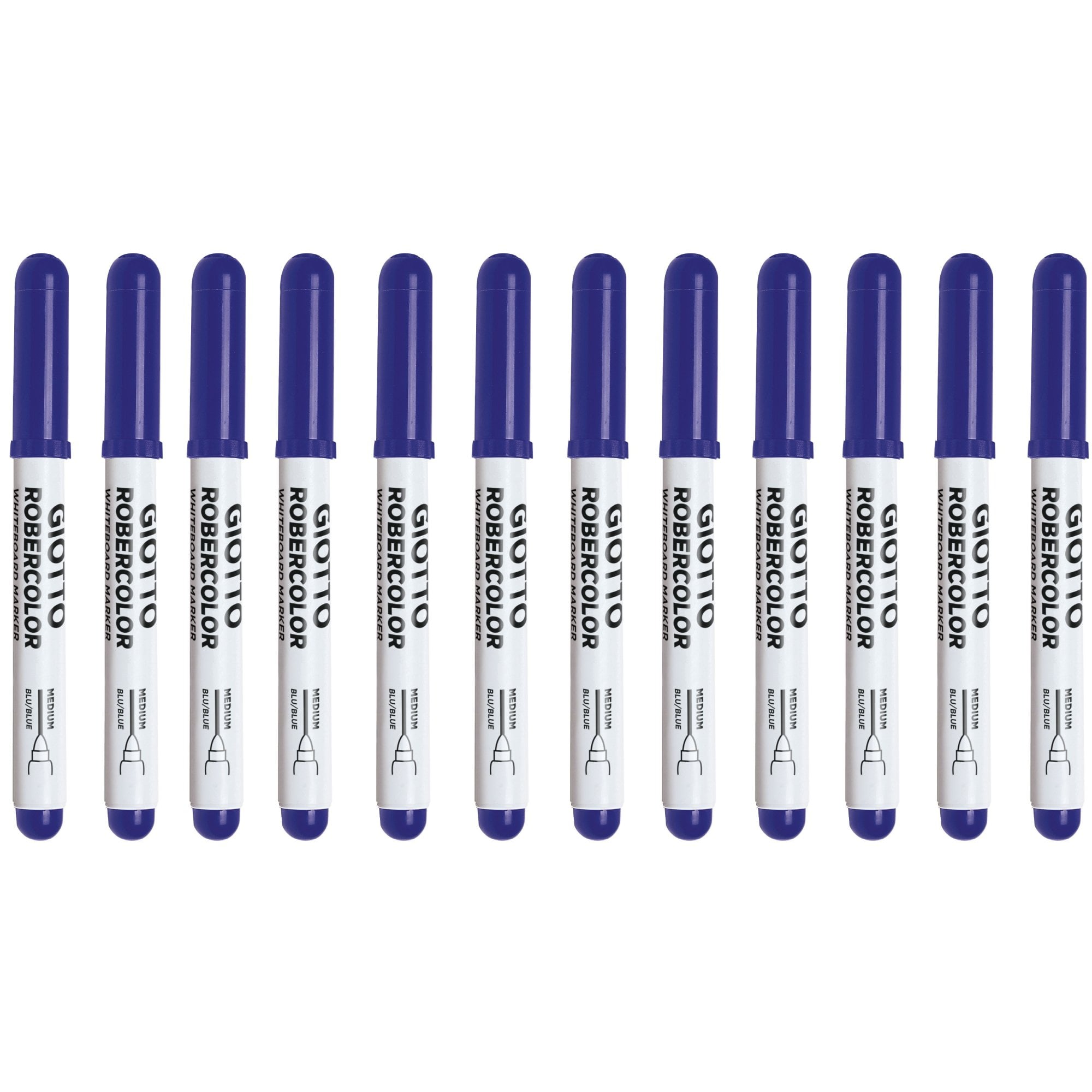 Pack of 12 blue dry-wipe whiteboards pens with medium tips.