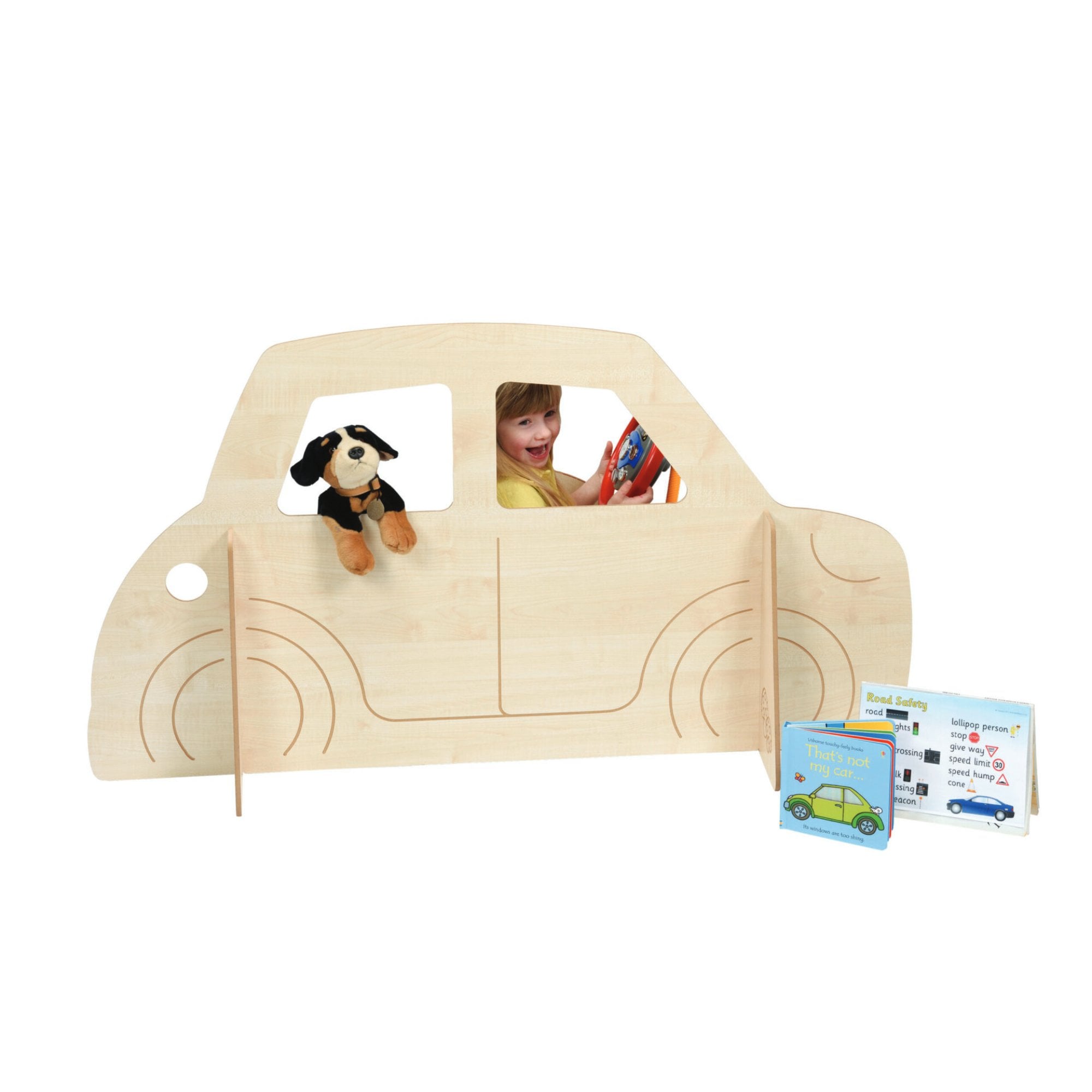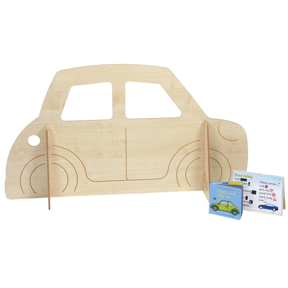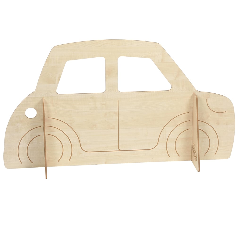 Single car panel, the perfect role play accessory.Made from 8mm covered MDF with bull nosed edges. Engraved Car Panel with solid supports. Refuelling slot. Designed for use by under 3s. Quick and easy assembly, supplied in flat pack from with easy to follow assembly instructions. Can be stored flat when not in use. Perfect for pack away settings and settings with limited space. Assembled Size: H740 x W1400 x D 340mm.
