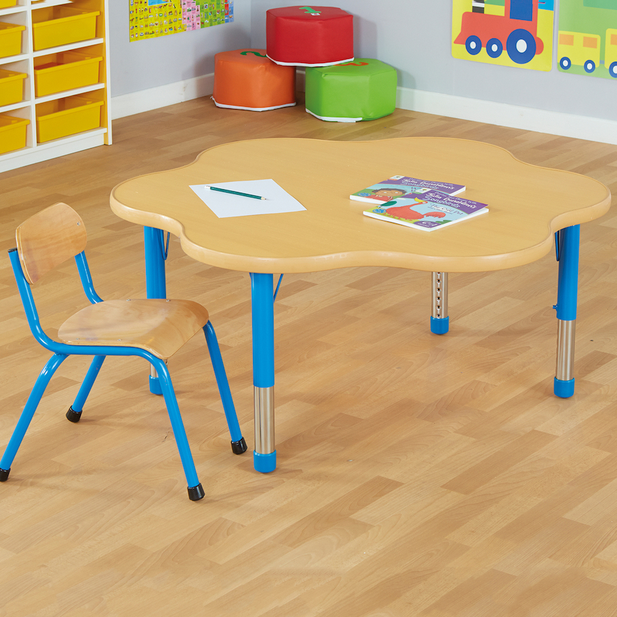 Height adjustable 38-60cm and available in two colours. Co-ordinates with other tables, chairs and storage units in the Copenhagen range. L120 x D110cm. Made from metal and wood. Self-Assembly. Suitable for 3 to 11 years.