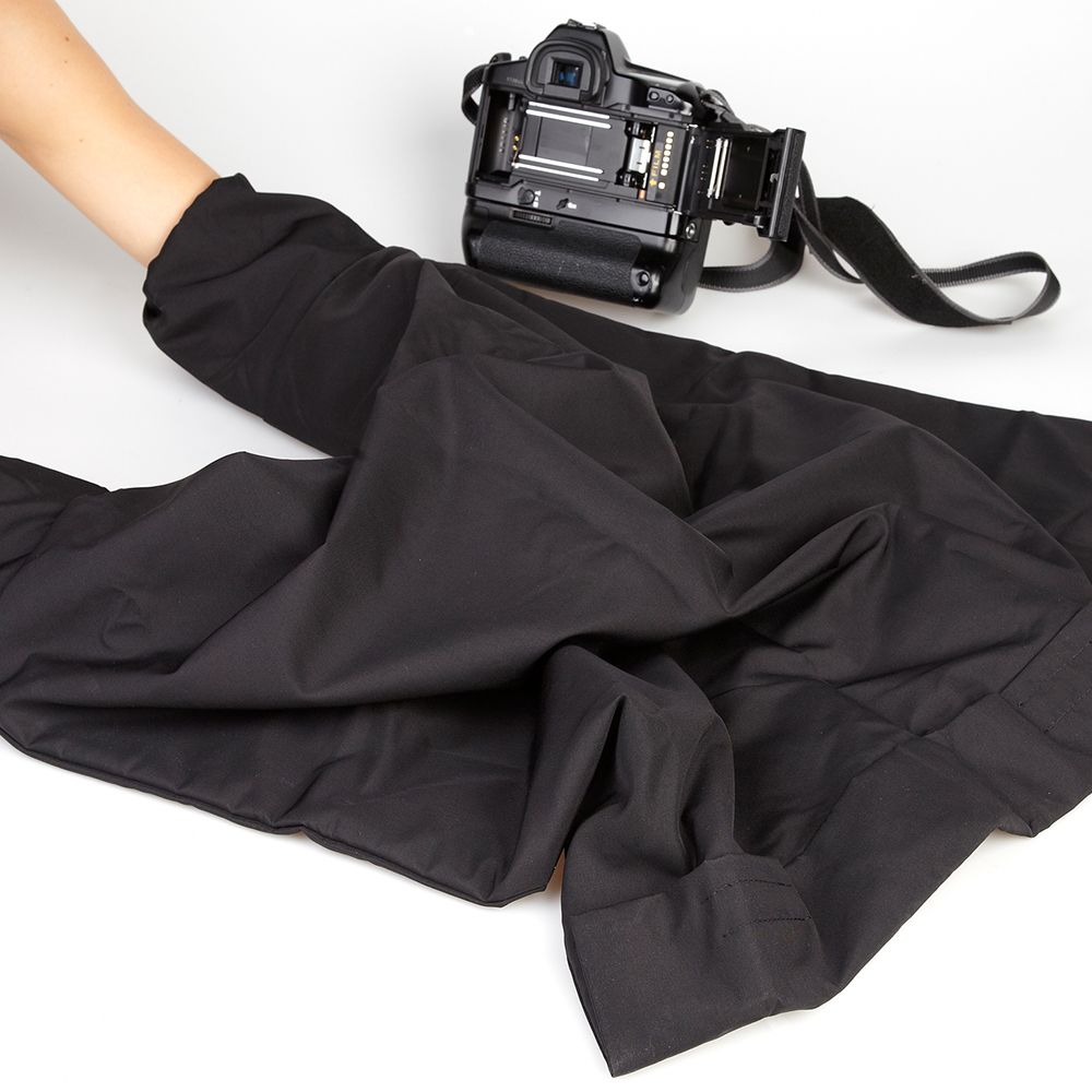 A changing bag is an essential piece of equipment for a photographer to carry. Having a changing bag means that a jammed or partly exposed film can be safely removed from the camera and shooting can continue and it will allow a film to be loaded into a developing tank without having to first find a darkroom. This changing bag is small enough to fit into a camera bag, yet large enough to allow a camera back to be fully opened once inside or a film to be loaded into a tank.