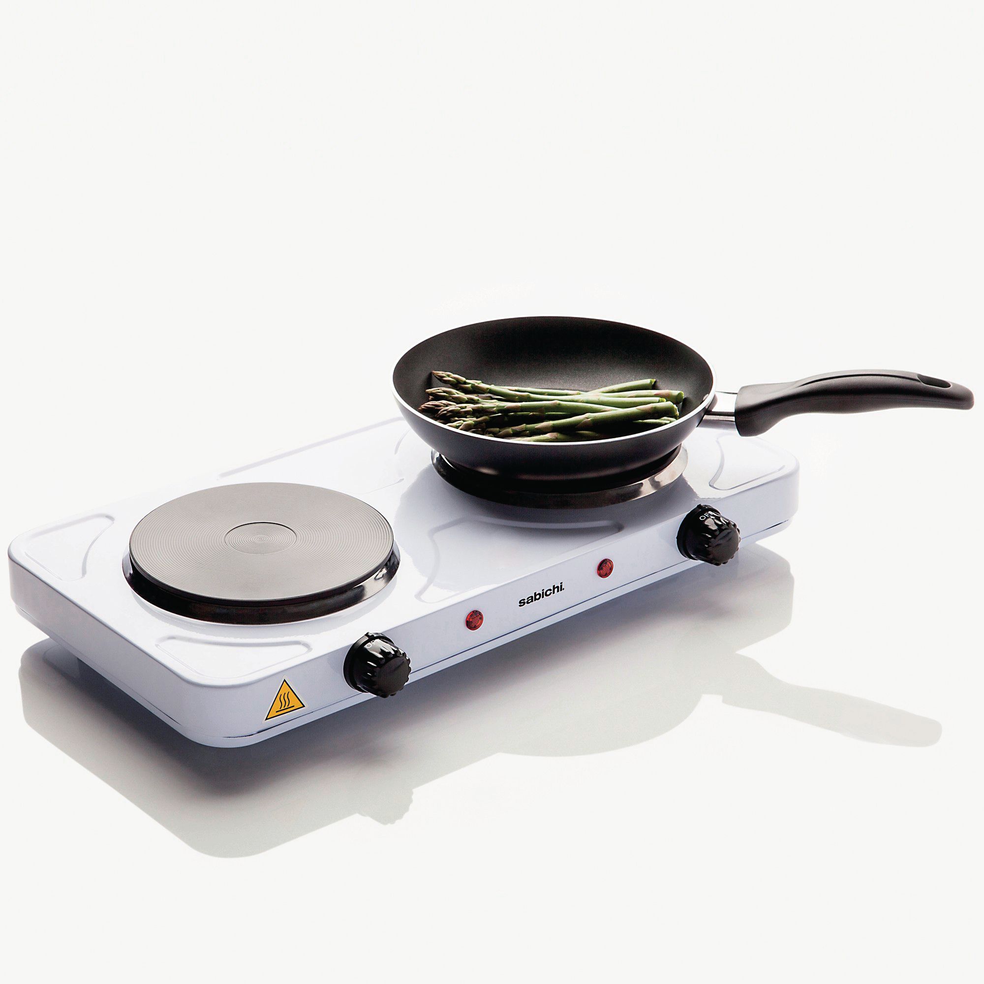Easy to clean twin 15cm solid hobs. This ring hob has adjustable temperature control and a LED light indicator