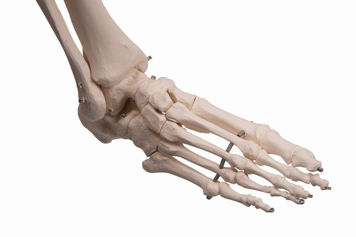 Full size, life-like, plastic adult skeleton clearly showing all the joints and with muscle attachments painted on the right side. The bones on the left side are numbered to match the key card. Complete with a roller stand and dust cover. Striking and stimulating, it is an unforgettable teaching aid.