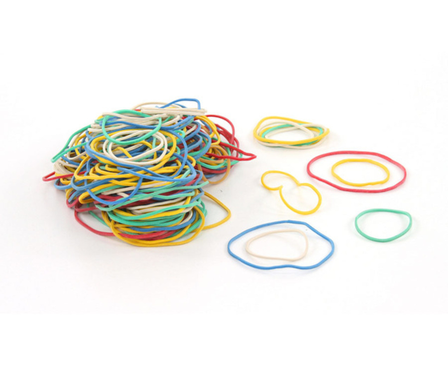 We have you covered! Colourful rubber bands in a poly bag, 35 mm rubber bands in various colours. The pack of 265 includes 4 different sizes of rubber bands.