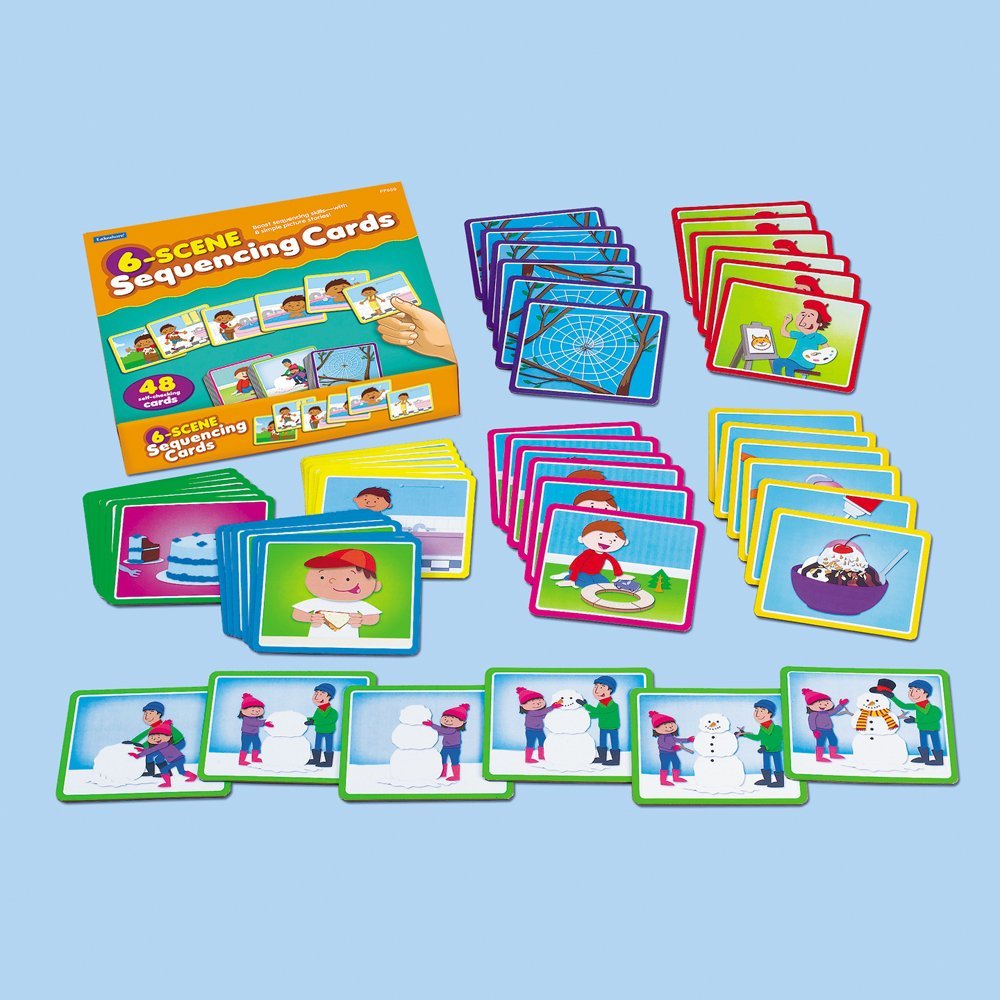 Children arrange the simple picture story cards in logical order, then turn the cards over to check their answers. Contains 48 cards. Size: card 9.5 x 11.5cm. Makes 8 sentences.