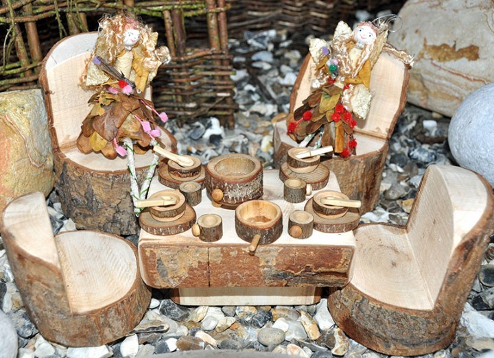 4 chairs 1 table. Handcarved so sizes may vary. Approximate sizes: each chair