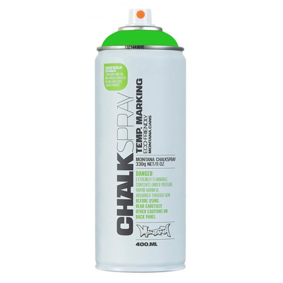 This eco-friendly, chalk-based pigment spray is ideal for outdoor temporary marking as well as for indoor studio artwork. The colours are dense and have excellent coverage. Montana CHALKSPRAY Paint can be applied on various surfaces such as playgrounds and pavements, walls, cardboard and canvas. Perfect for use at special event days.