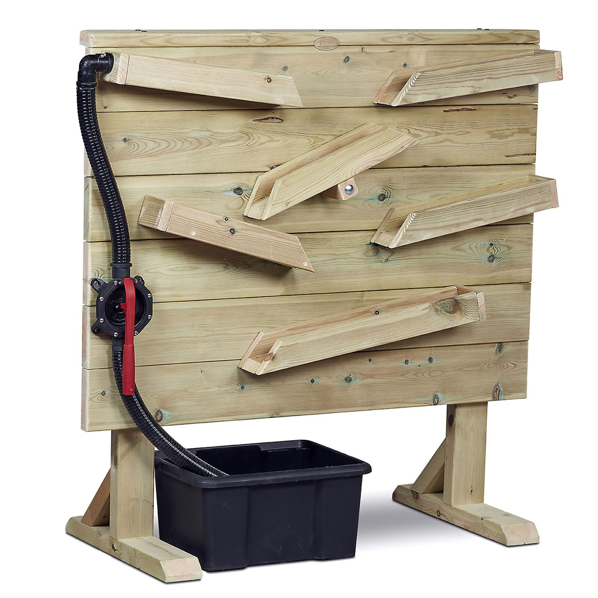 A wonderful outdoor water wall which encourages children to experiment with water. The freestanding, sturdy design features a water pump, trough and 6 x wooden water chutes. The pump transports the water to the top chute and from there it flows down the wall and collects in the trough below – ready for the cycle to begin again. €¢ Made using premium quality Scandinavian Redwood €¢ Smooth finish – soft to touch and no splinters €¢ Rounded edges for added safety €¢ Manufactured in the UK €¢ Fully assembled €¢ Specially treated timber guaranteed for 10 yearsL1200mm x W600mm x H1200mmStandard delivery times may not apply to this product. Please contact Customer Care if you require further information.