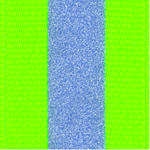High technology safety ribbon with central silver reflective strip, 25mm/1′ wide. Available by the metre.