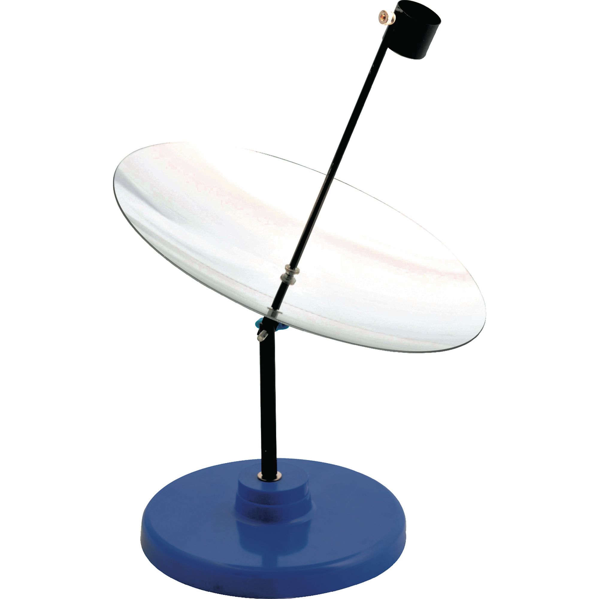 For demonstrating the high temperatures that may be generated by focusing sunlight in an appropriate manner, and illustrating an ‘alternative’ method of heating. The apparatus consists essentially of a rear aluminised parabolic mirror, 305mm diameter x 185mm focal length, and a matt black copper receiver vessel, carried upon an arm at the focal point of the mirror.
