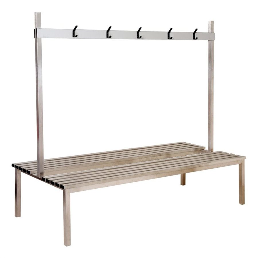 Stainless Steel Double Sided Changing Room Bench 1000mm Wide 10 X Coat Hooks