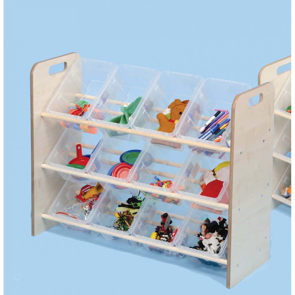 This tidy tray unit comes supplied with 12 clear plastic mini trays.Constructed from 15mm maple faced MDF with bull-nosed polished edges and 18mm dowel supporting the trays. Simple self assembly required, clear instructions included. Size: L91.8 x W33 x H75cm.Standard delivery times may not apply to this product. Please contact Customer Care if you require further information.